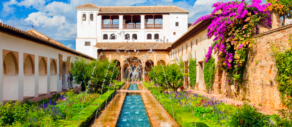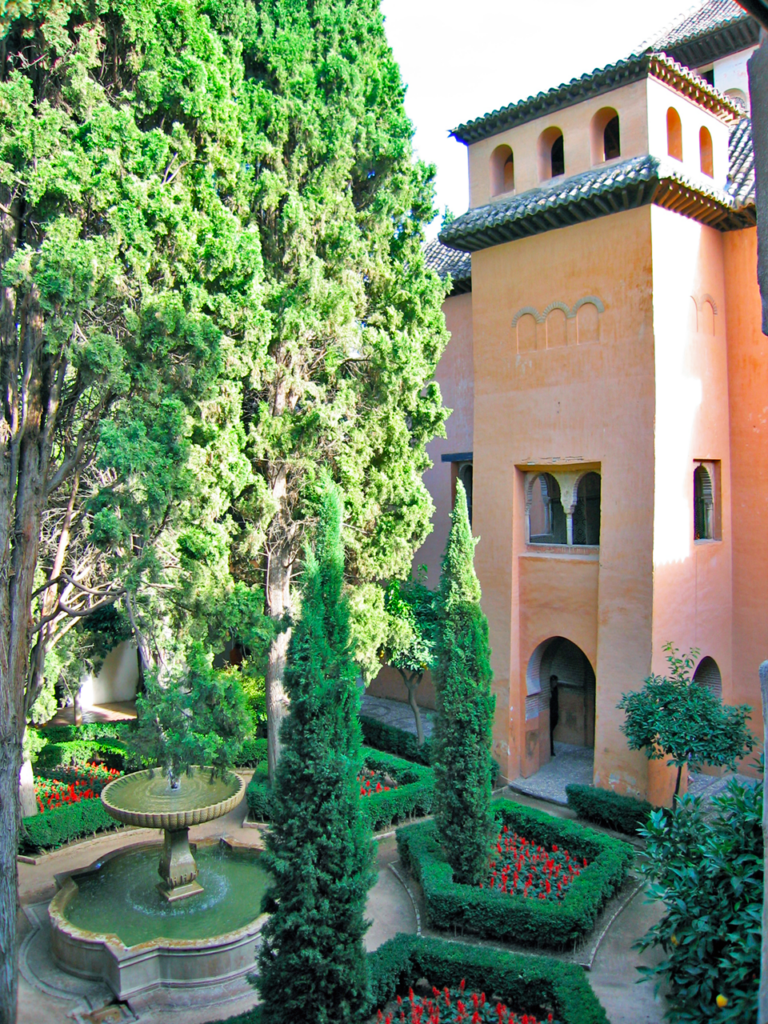 The summer gardens, or Jardines del Generalife, in the legendary courtyards adjacent to the Alhambra, Granada